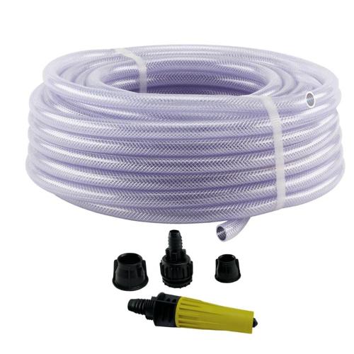 Cuide do seu jardim com o alcance máximo e a transparência que garantem total eficiência! A solução imediata para quem procura uma mangueira durável, flexível e de longo alcance, ideal para regas, lavagens e manutenção de áreas externas de grande porte.