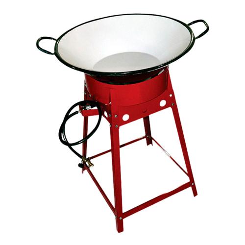 Tacho Esmaltado Branco N18 (10L): Inclui bacia em aço esmaltado a fogo, $100\%$ atóxico, que inibe a proliferação de bactérias. O volume de $10$ litros proporciona a conveniência de fritar grandes porções de pastéis e salgados com máxima higiene e facilidade de limpeza.